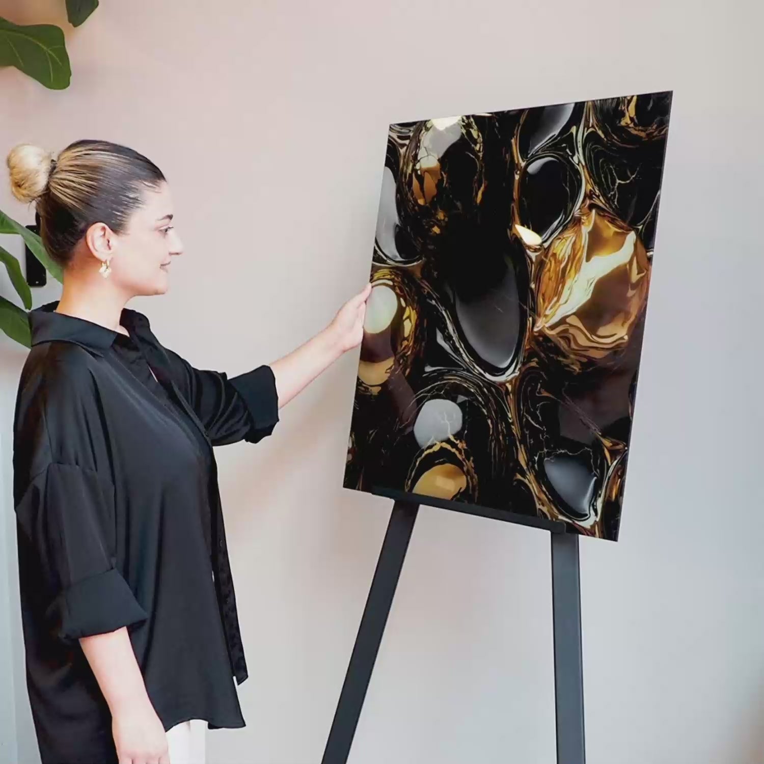 - Cam tablolarımızın arkasında bir askı aparatı mevcuttur. Duvar tipinize uygun bir çivi yardımı ile ürünümüzü duvarınıza kolaylıkla asabilirsiniz. (Yalnızca 63x63 cm 93x93 cm ölçülerimizde çift askı aparatı mevcuttur).